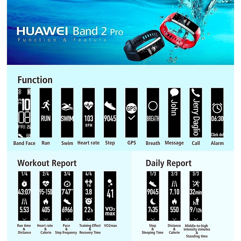 Huawei Band 2 Pro All In One Activity Tracker Smart Fitness Wristband Gps Multi Sport Mode Heart Rate Sleep Monitor 5atm Waterproof Black Electronics Amazon Com