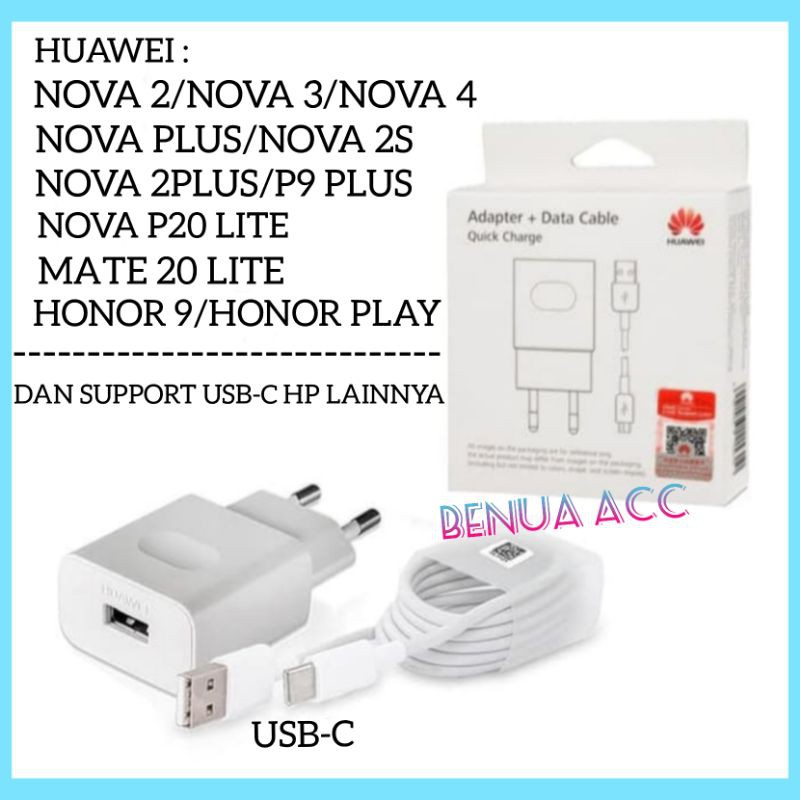 Charger Original Huawei P9 Plus P20 Lite Nova 2 Nova 3 Nova 4 Fast Charging Usb C Shopee Indonesia
