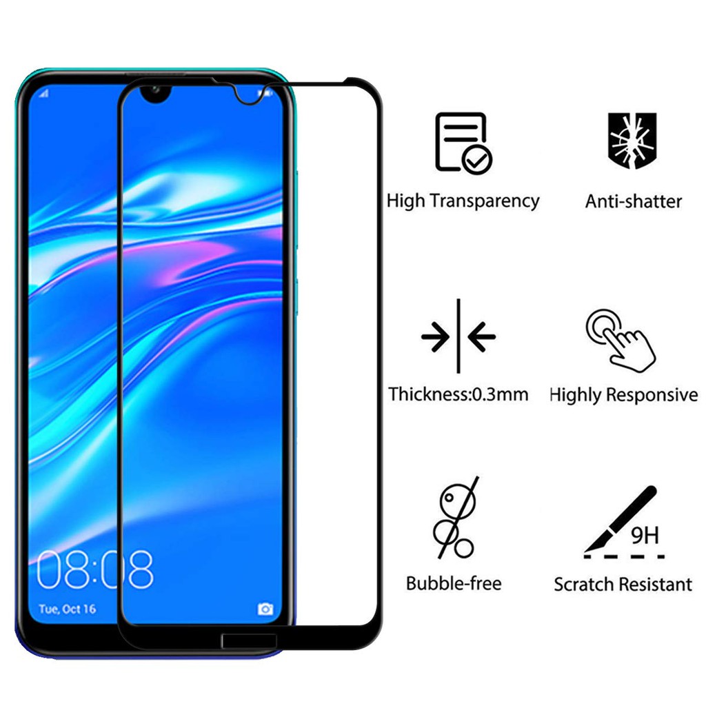 2pcs Huawei Y7 Pro 2019 Tempered Glass Full Cover Glue Screen Protector Pelindung Layar Film 9h Shopee Indonesia